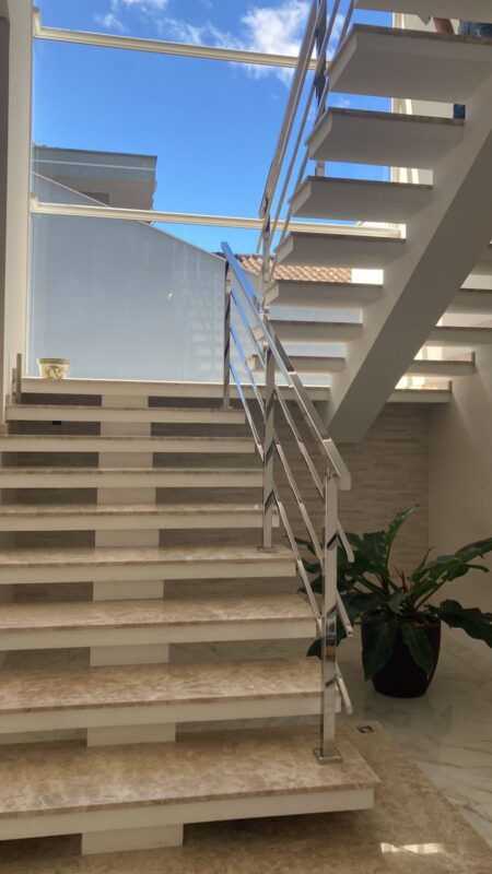 • Escadas: O local mais comum para a instalação de corrimãos de inox é em escadas, tanto internas quanto externas. Eles garantem segurança durante a subida e descida, prevenindo quedas e acidentes.